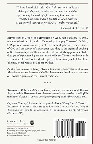 Does God truly exist? Is there a higher power responsible for the creation of humankind, and all that we consider to be reality? If so, where is this God? Does it exist on a different plane of reality? These questions have baffled humanity since the birth of intelligent thought. Where did we come from, and who is responsible for our being here? The book Metaphysics and the Existence of God (Thomist Tradition Series), by author Thomas C. O'Brien, and editor Cajetan Cuddy, O.P. explores the relationship of religion, and the existence of God, and the findings and understandings of modern science. Originally published over 60 years ago, Metaphysics and the Existence of God has been a classic companion on the quest to merge the ideas of spirituality and science.