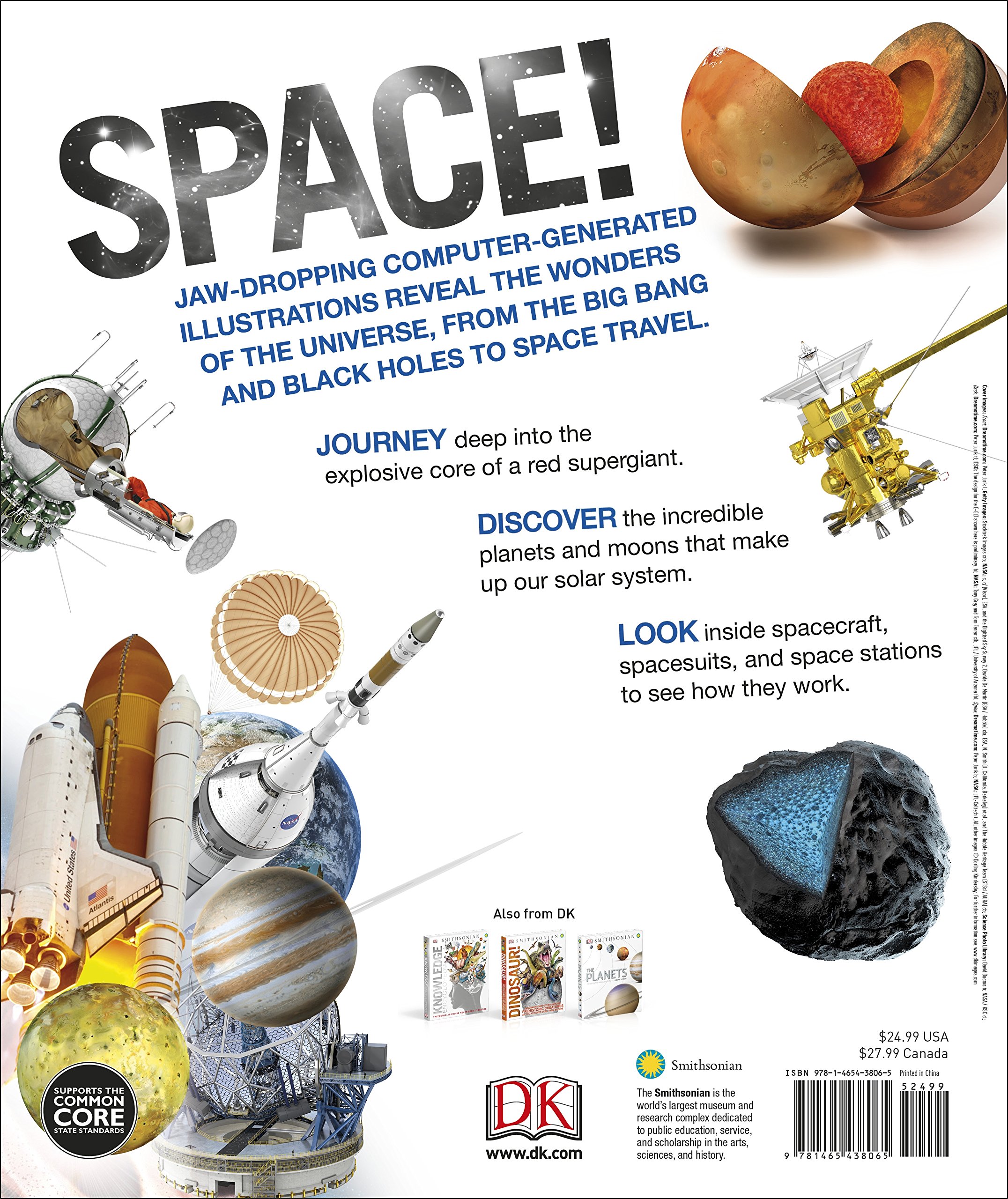 Space!: The Universe as You've Never Seen it Before (Knowl;edge Encyclopedias) by author DK, is a fascinating and stimulating look at what lies beyond the safety and familiarity of our own planet! This book is expertly written for children, in such a way that their interest will be piqued, and their curiosity satiated! Featuring several contributions from the renowned Smithsonian Institute, this book attempts to unravel the mysteries of the universe in a way that is both interesting, and easy to understand. Space!: The Universe as You've Never Seen it Before is the perfect way to entertain and educate younger readers, and future astrologists!