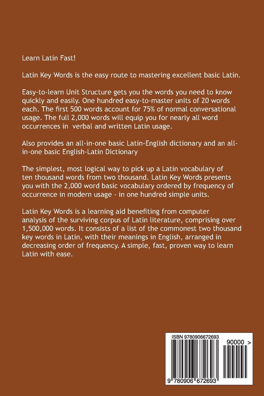 Latin is one of the most beautiful languages which has ever existed. And Latin Key Words: Learn Latin Easily: 2,000 Word Vocabulary Arranged by Frequency in a Hundred Units, with Comprehensive Latin and English Indexes (Oleander Language and Literature) is one of the best ways possible to perfect your mastery of it! This new fully revised and updated edition features an included bonus PDF version that can be used on your PC, tablet, or mobile phone! This has been proven to be the easiest, fastest and best way to learn the Latin language. Latin Key Words was originally released on October the 13th, 2013, and was published by Oleander Press.