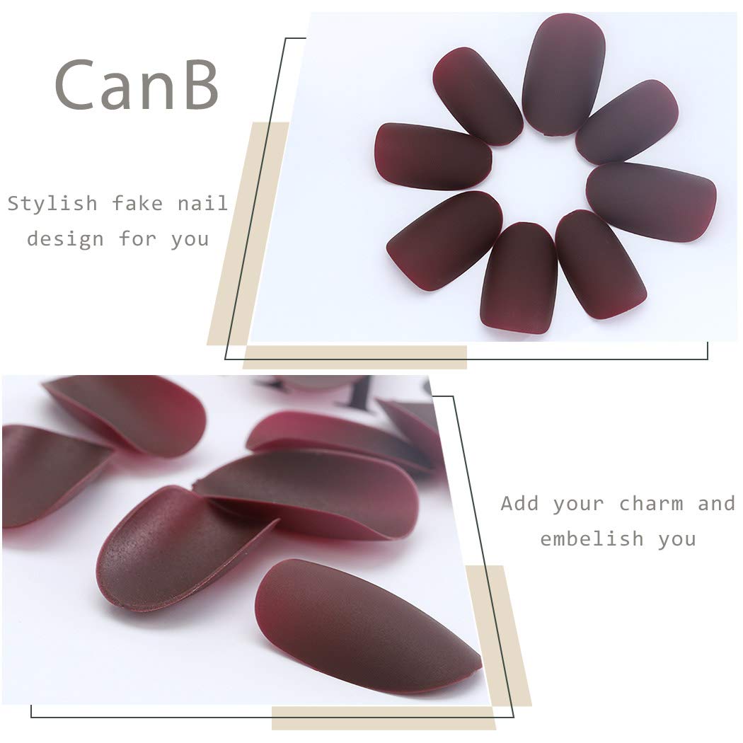 CanB False Nails Art Accessories Fake Nail Tips Full Cover Glossy Nails Medium Press on Nails French Acrylic Natural Artificial Nails for Party and DIY Salons (Red)