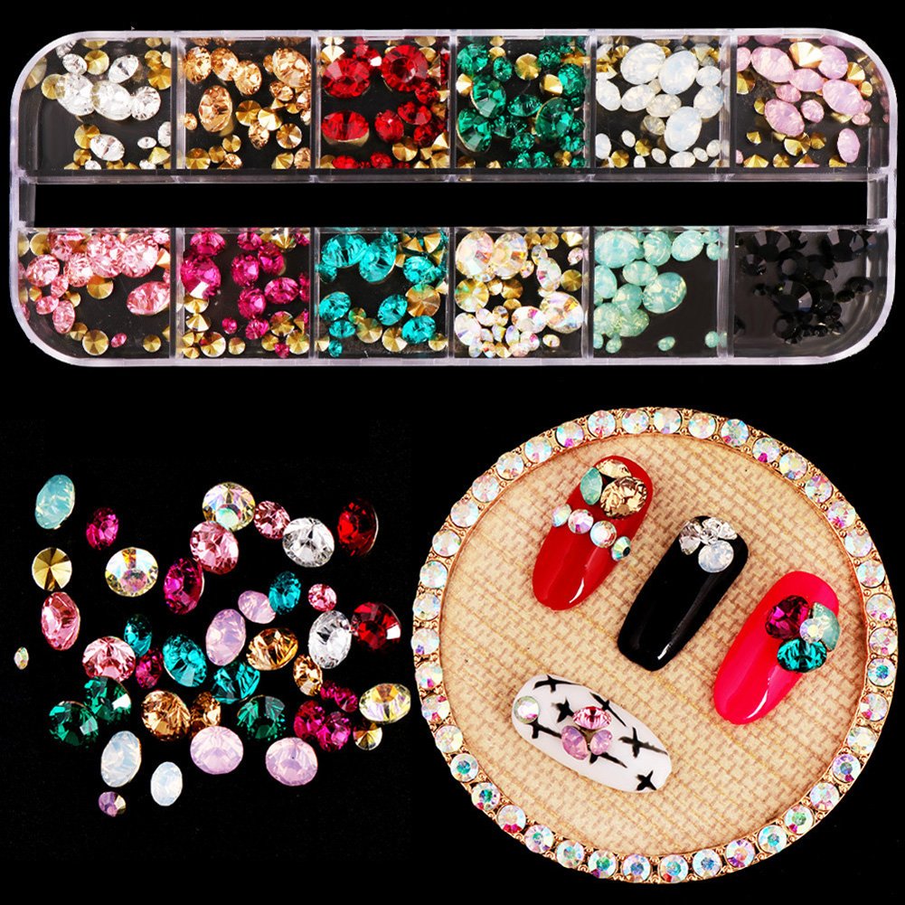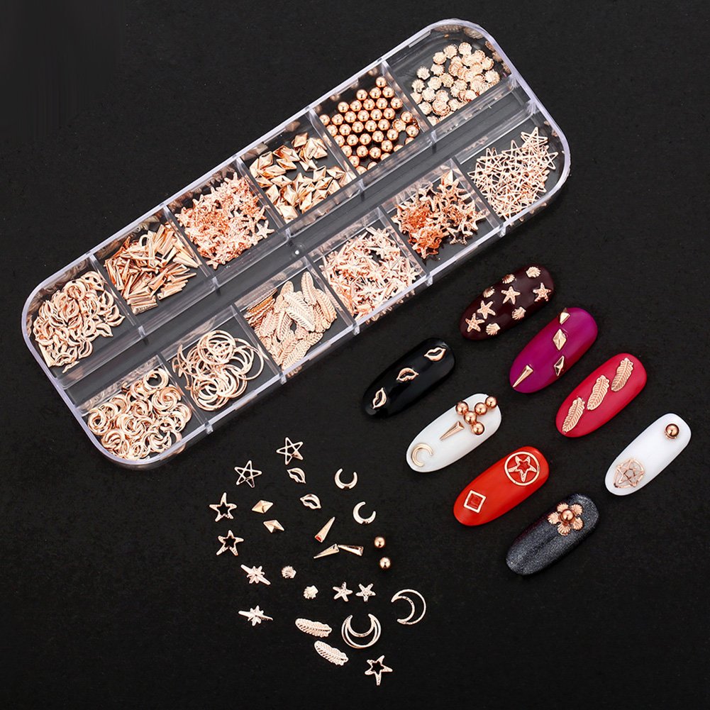 • Mixed-shape,Mix-size,Mix-color nail rhinestones,metal studs, it offers various 3D acrylic nail art works
