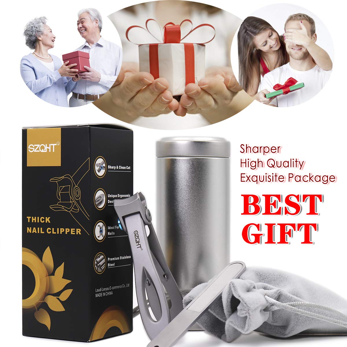 SZQHT 15mm Wide Jaw Opening Nail Clippers for Thick Nails,Finger Nail Clippers for Ingrown Toenail Clippers for Men,Tough Nails, Seniors, Adults.Deluxe Sturdy Stainless Steel Big(Silver)