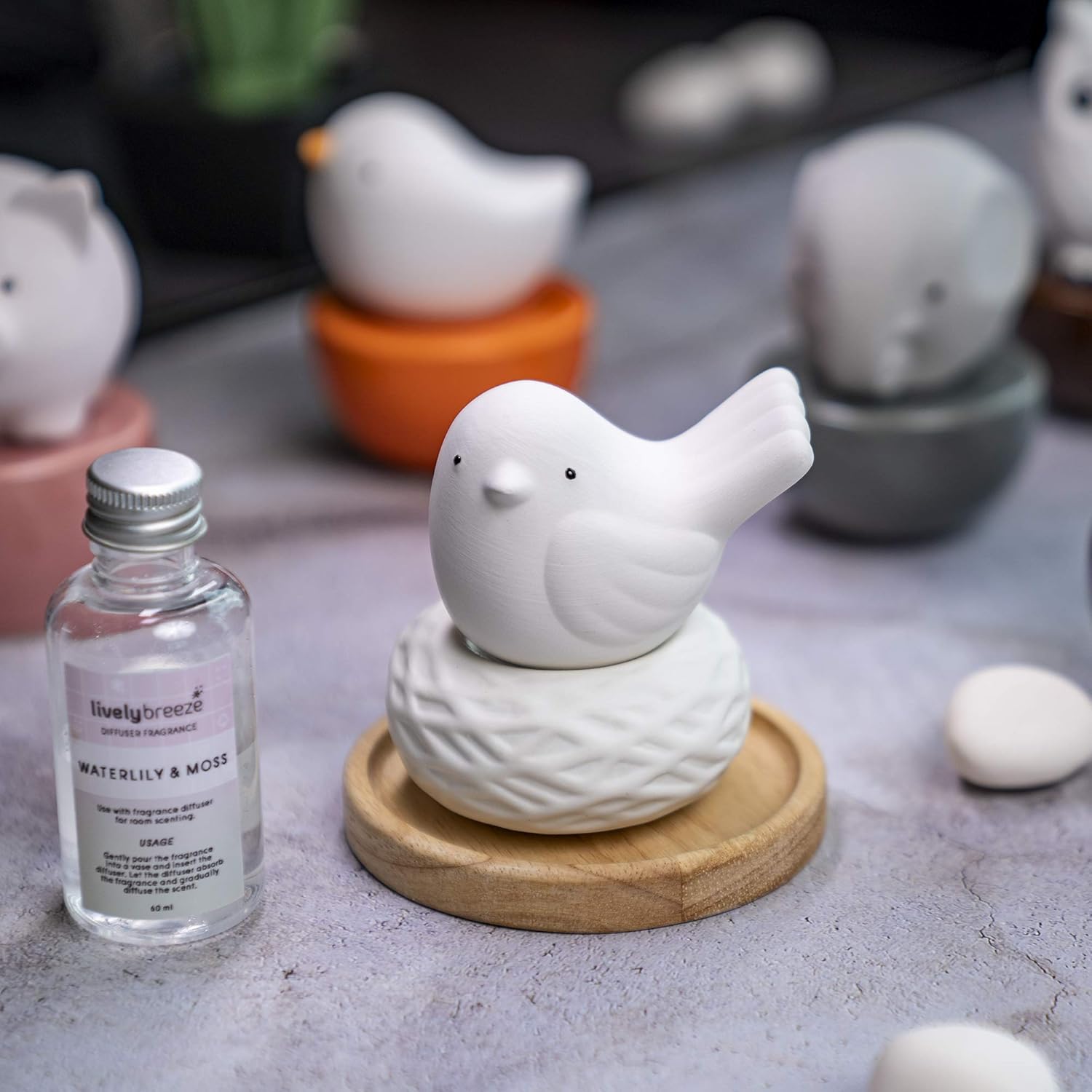 Lively Breeze Little Bird Nest, Non-Electric Ceramic Diffusers for Essential Oils and Aromatherapy Fragrance, White Ceramic Diffusers in Car or Bathroom and Desk Office Decor, White Vase