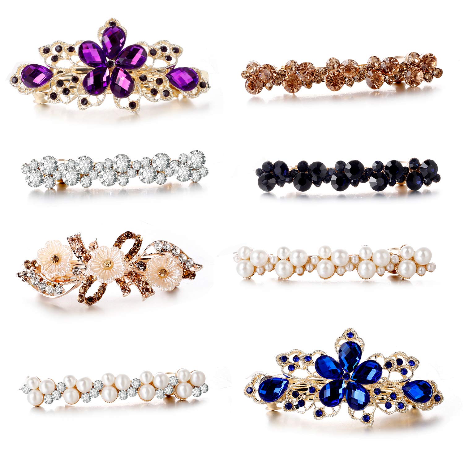 Minimalism CZ White Pearl Hair Clips Decorative Champagne brown CZ Crystal Hair Barrettes Bridal Hair Pins Bridal Hair Clip Handmade Hair Accessories for Teens Girls Women with Hair Styling (Mix)