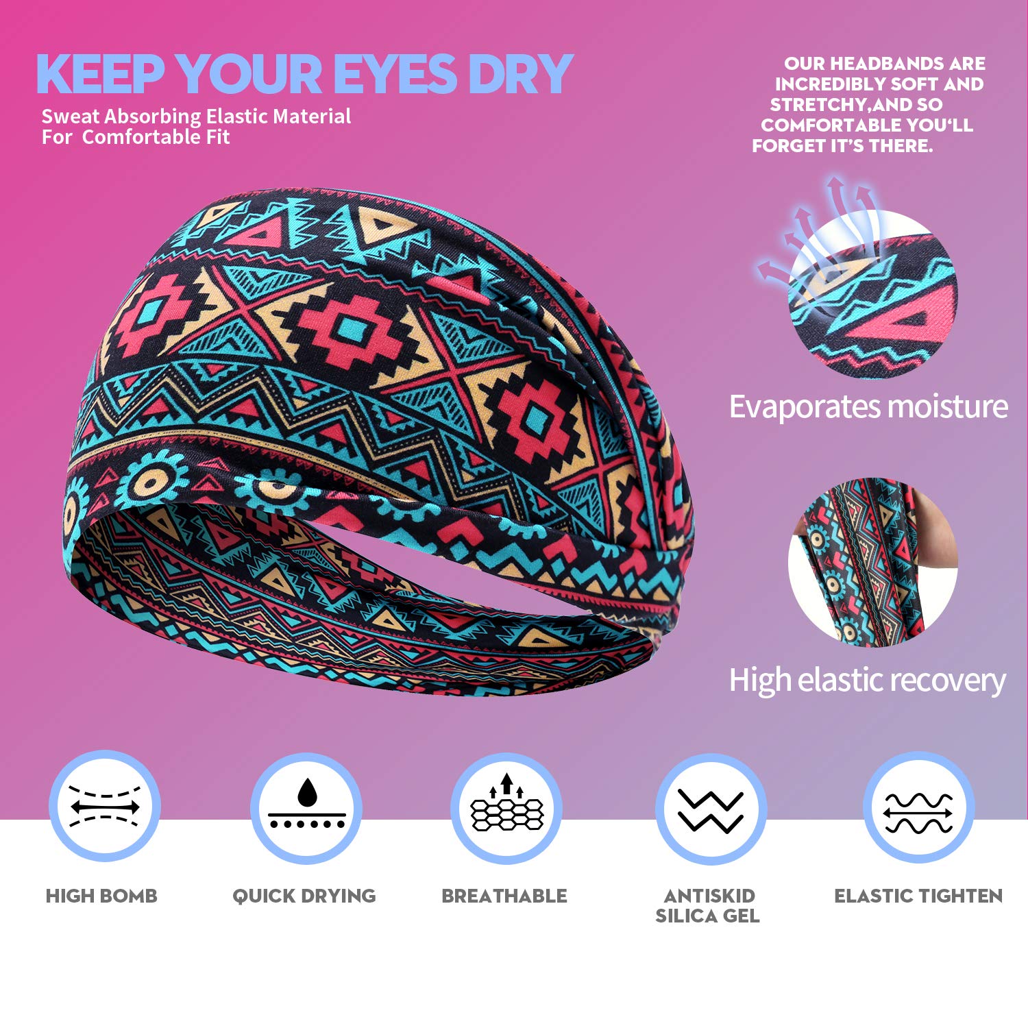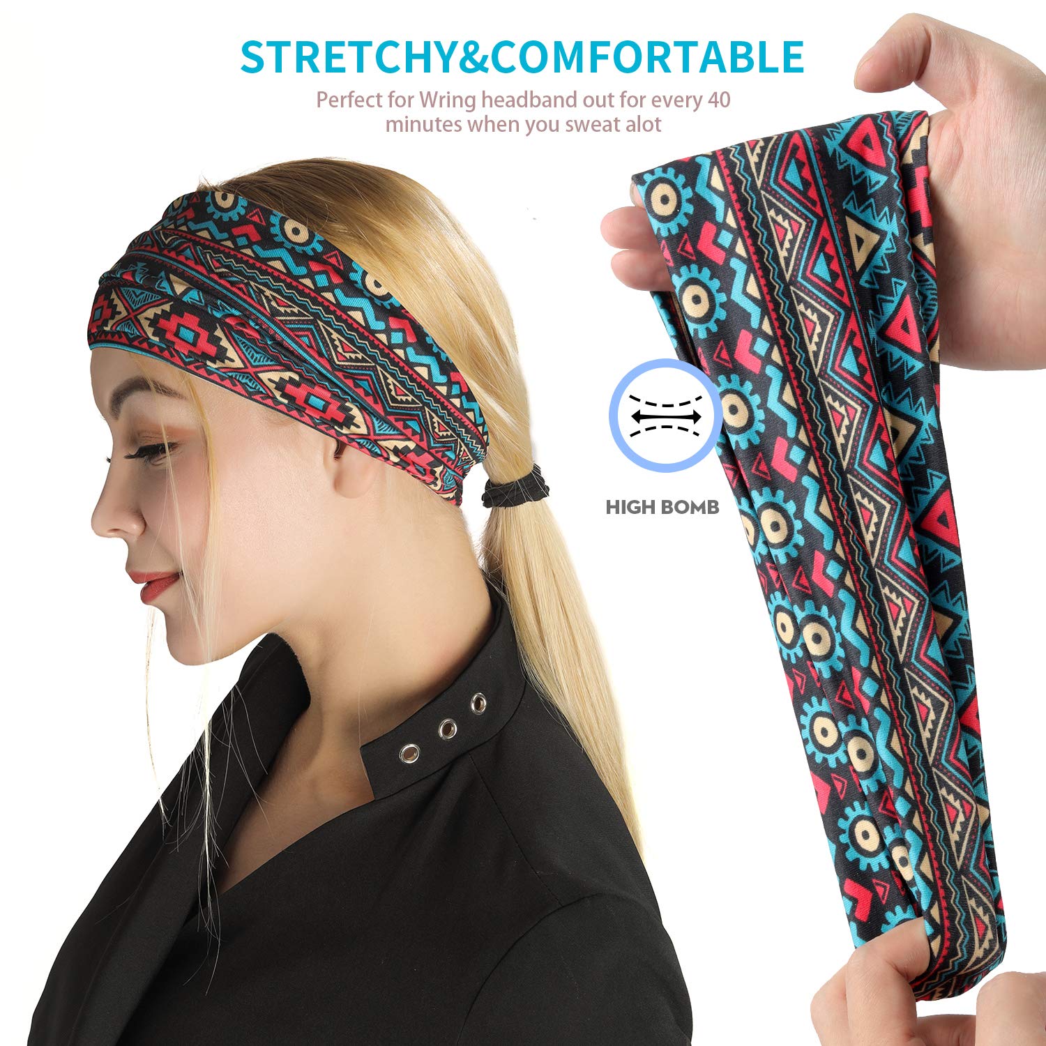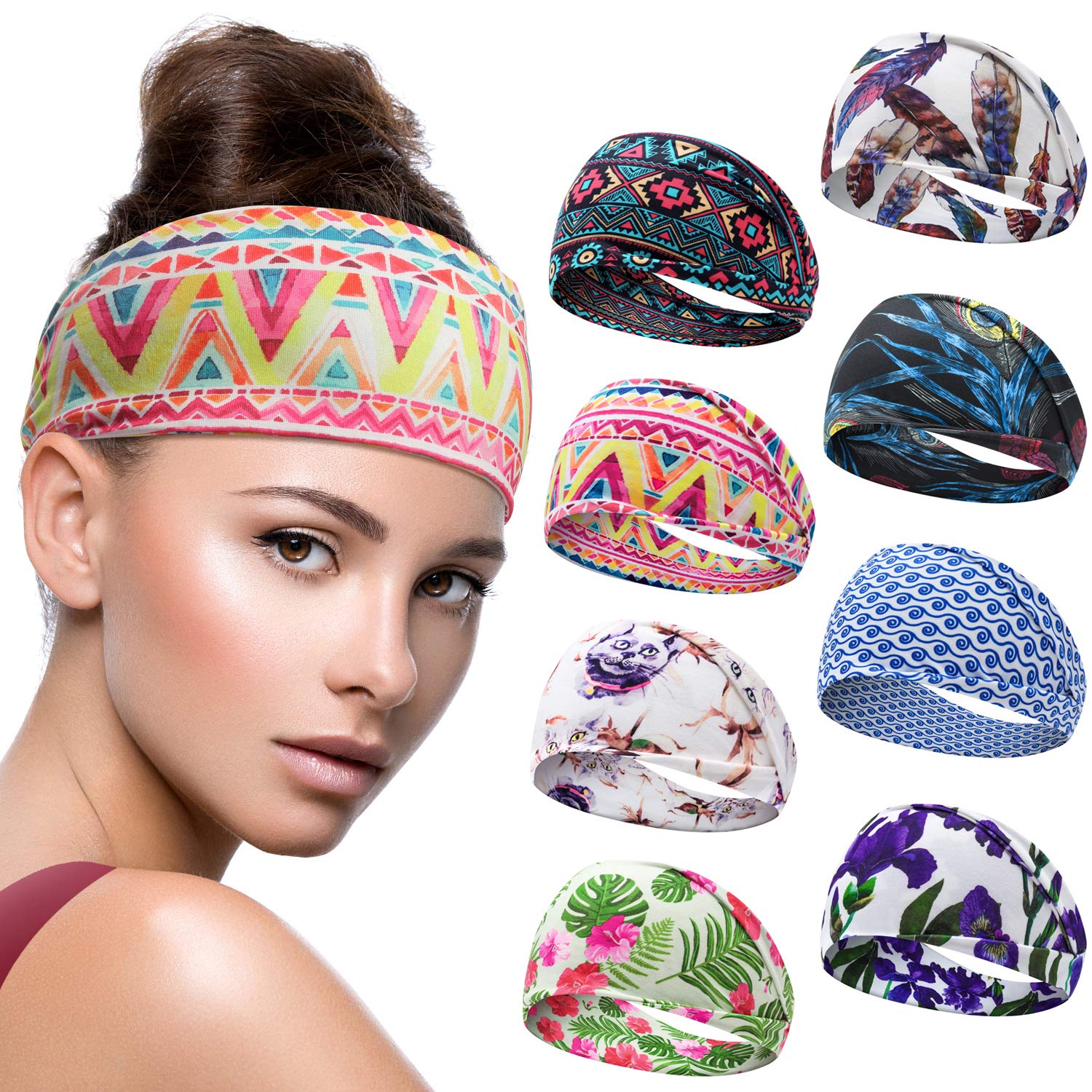 Headbands for Women, Bohemian Style Yoga Elastic Headwraps Head Wrap Hair Band 8 Pack (Style-1 (8 Pack))