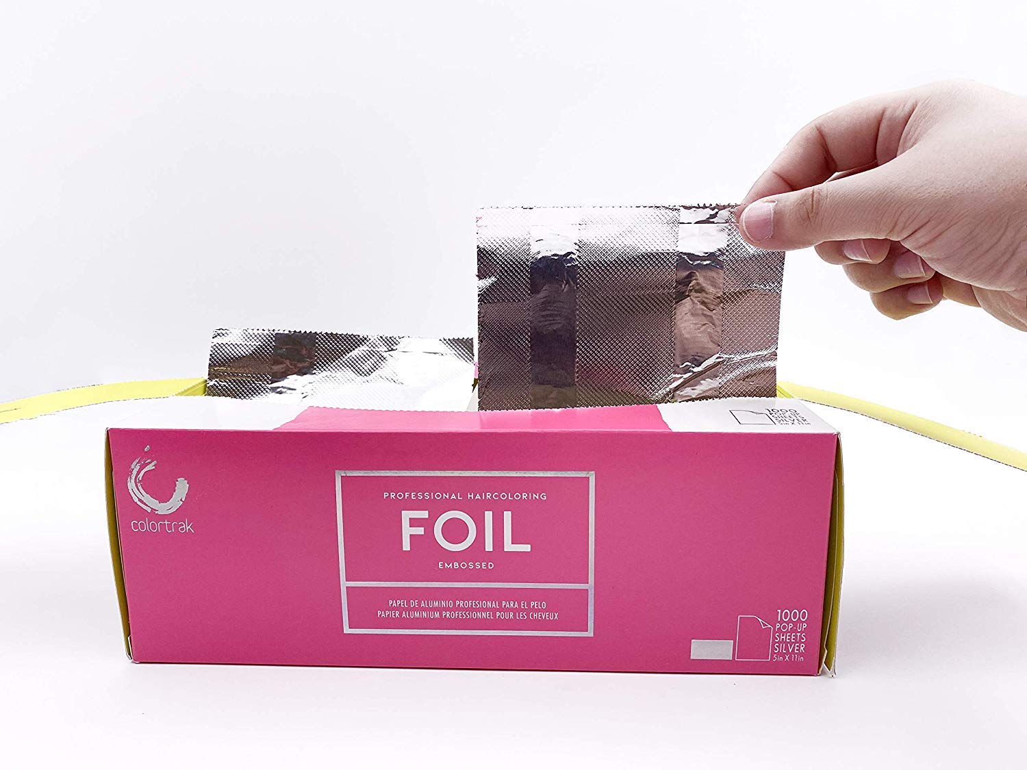 - ECONOMICAL POPUP IN BULK: 5 x 10.75 inch silver foil sheets are pre-cut ready to use. The popup foil by Colortrak provides hair coloring foils in bulk at a great price, with each box containing 1000 pre-cut foil sheets.