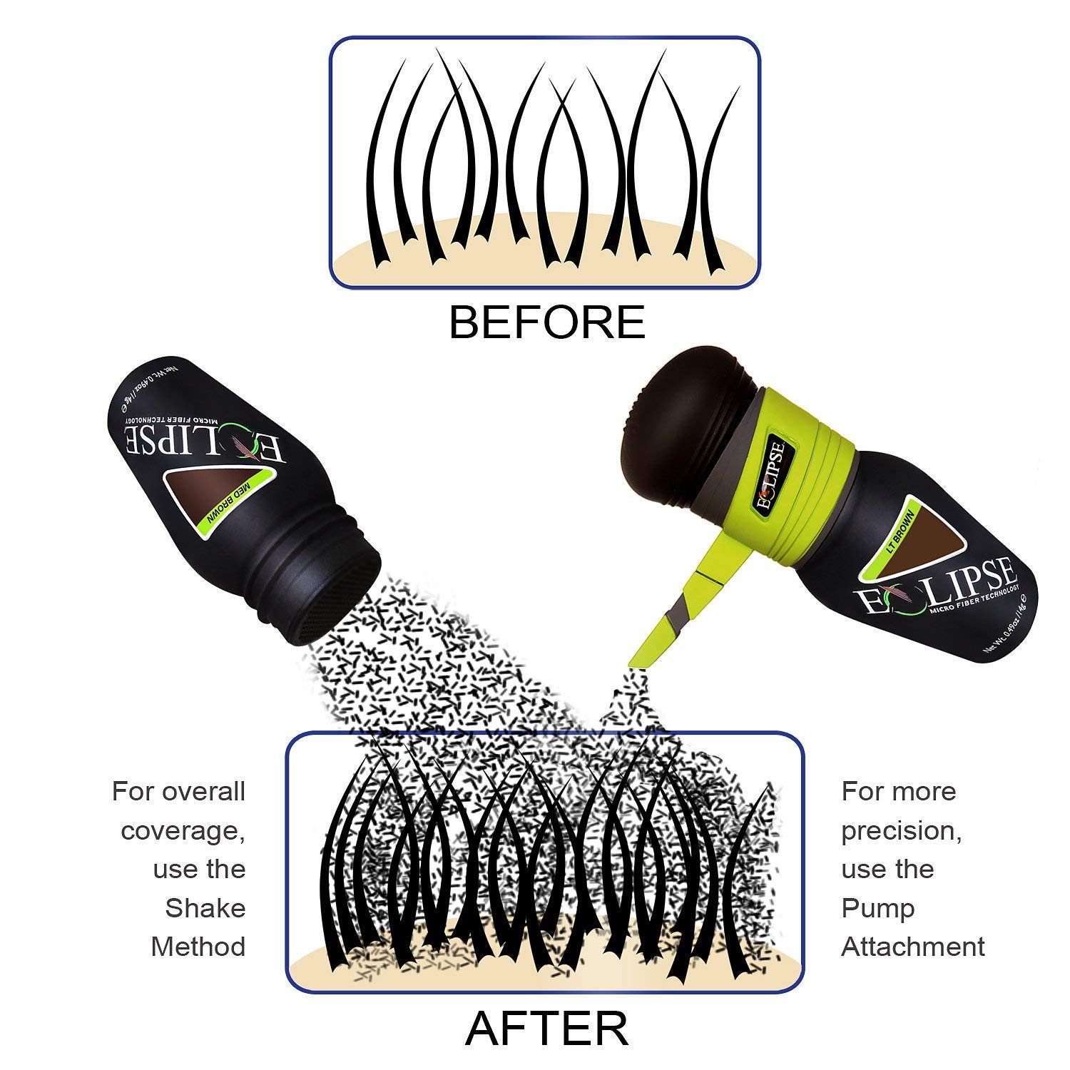 Eclipse Hair Fibers for Thinning Hair (LIGHT BROWN) For Women & Men - 100% Undetectable Fibers - 60g Bottle - Completely Conceals Hair Loss in 15 Seconds