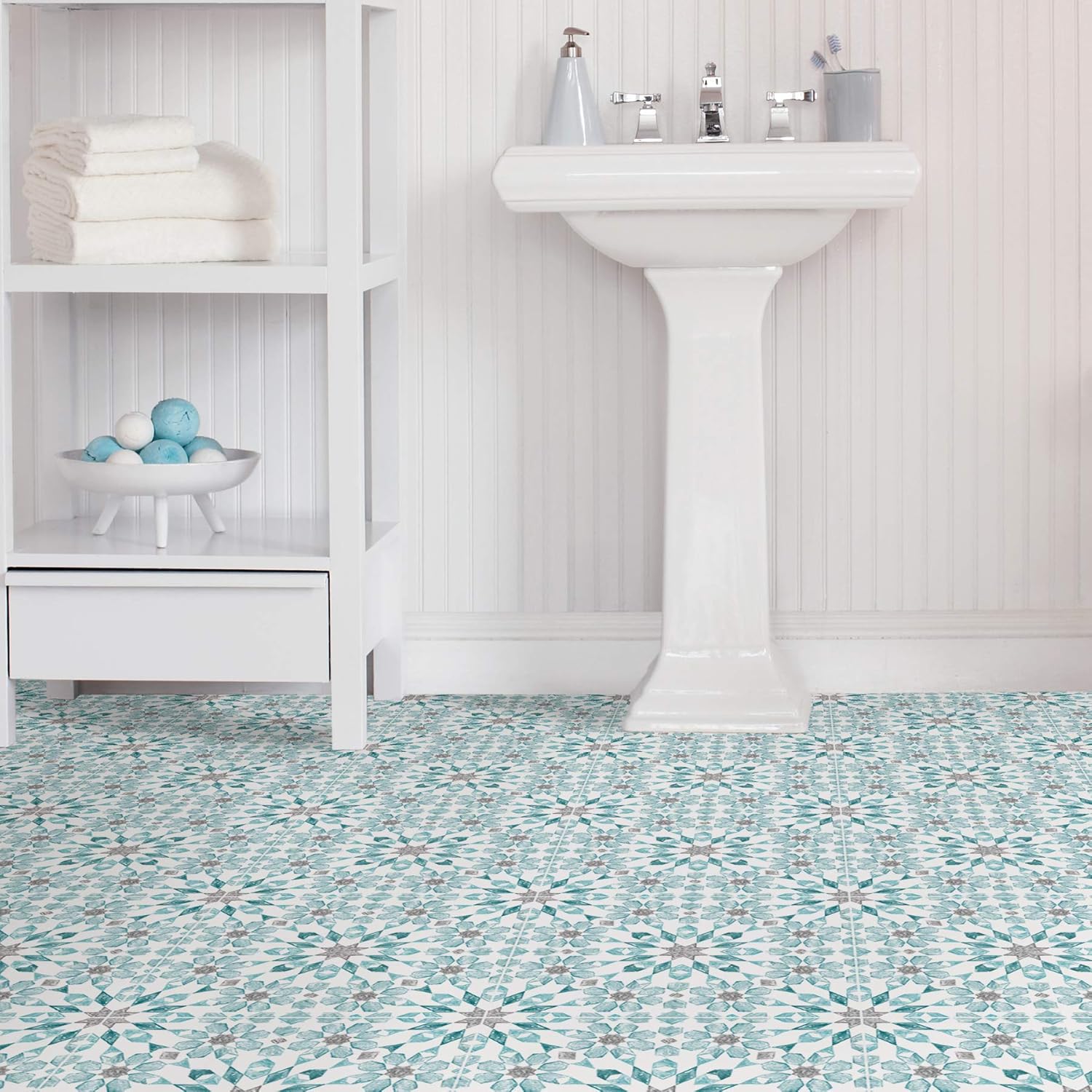 FloorPops FP2949 Radiance Peel & Stick Floor Tile, Blue, 10 Square Feet