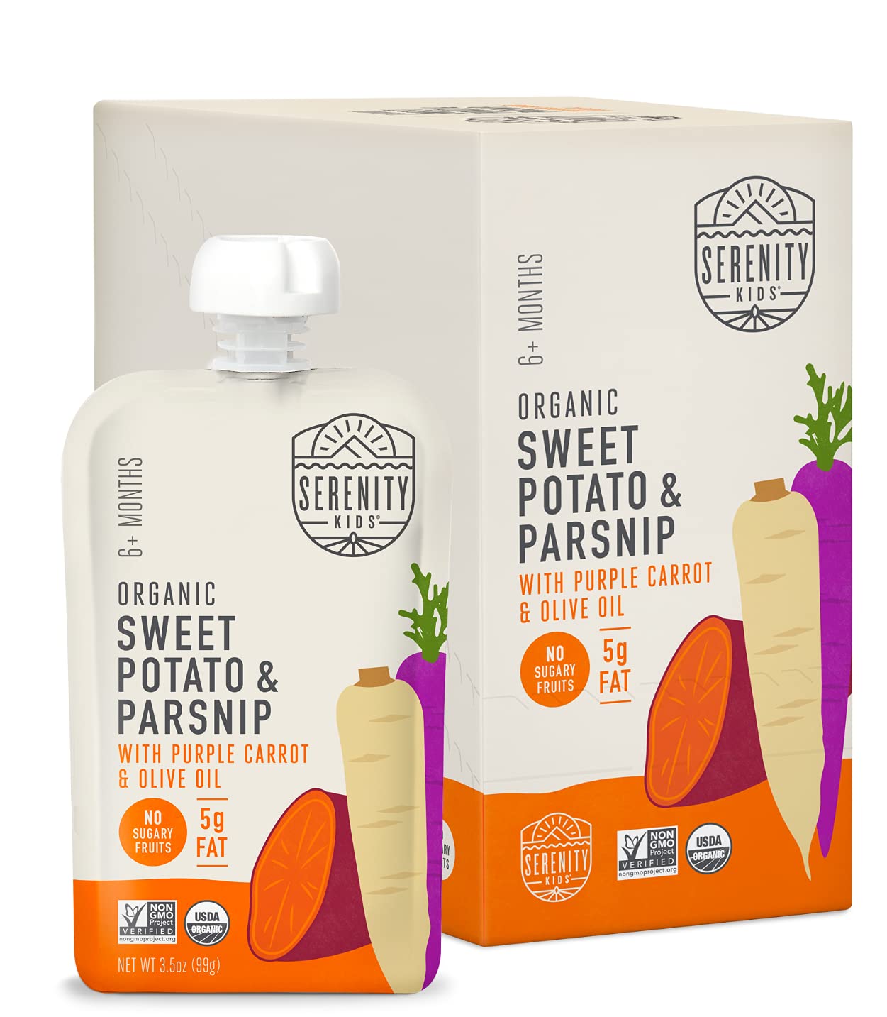 Serenity Kids Baby Food Pouches, Organic Sweet Potato & Parsnip with Organic Olive Oil, For 6+ Months, 3.5 Ounce Pouch (6 Pack)