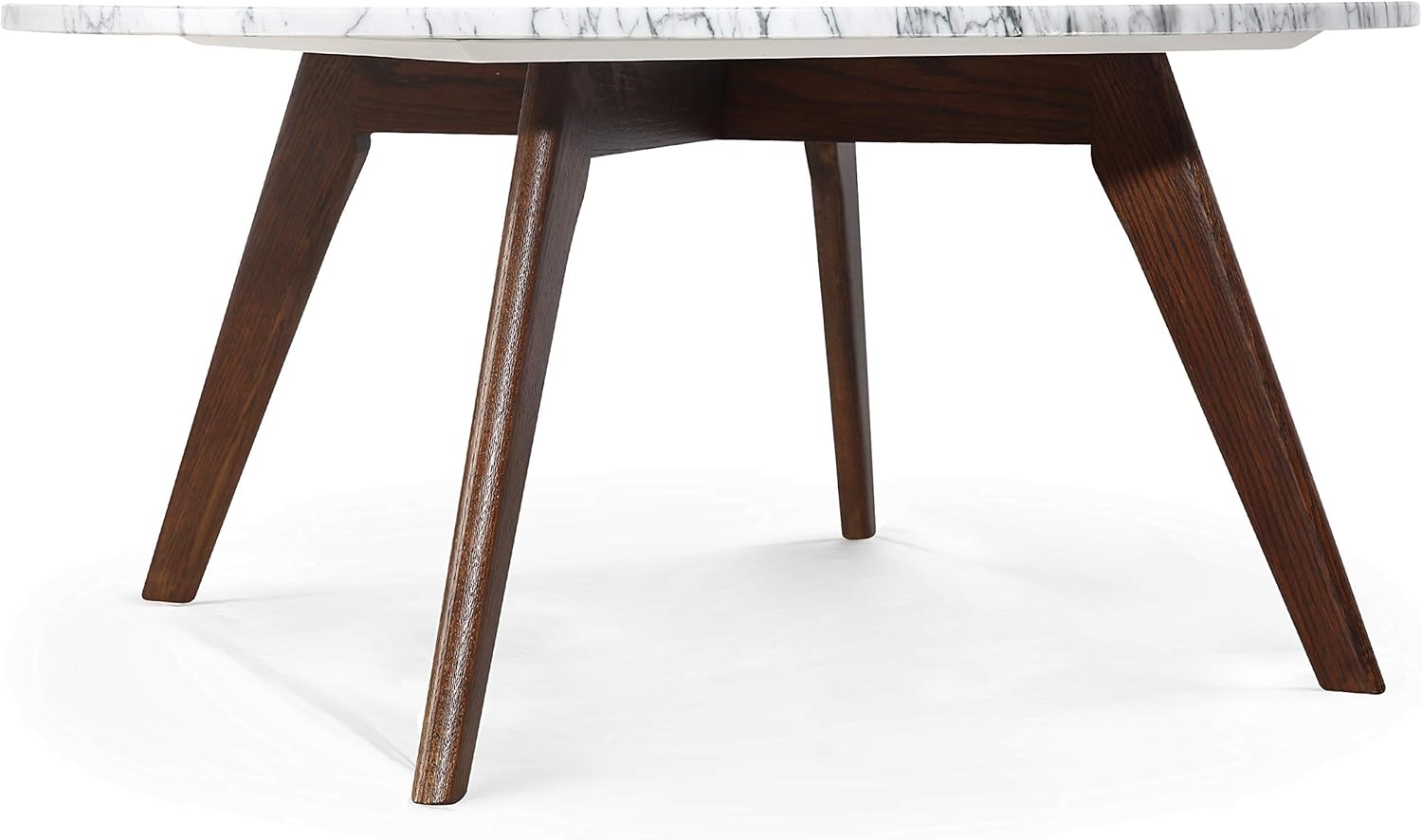 POLY & BARK Riley Marble Round Coffee Table, Walnut