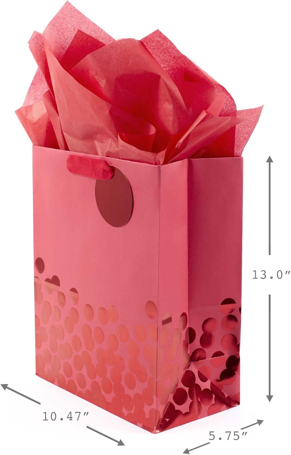 Hallmark 13" Large Gift Bag with Tissue Paper (Red Foil Dots) for Christmas, Father's Day, Birthdays, Graduations, Valentines Day, Sweetest Day or Any Occasion