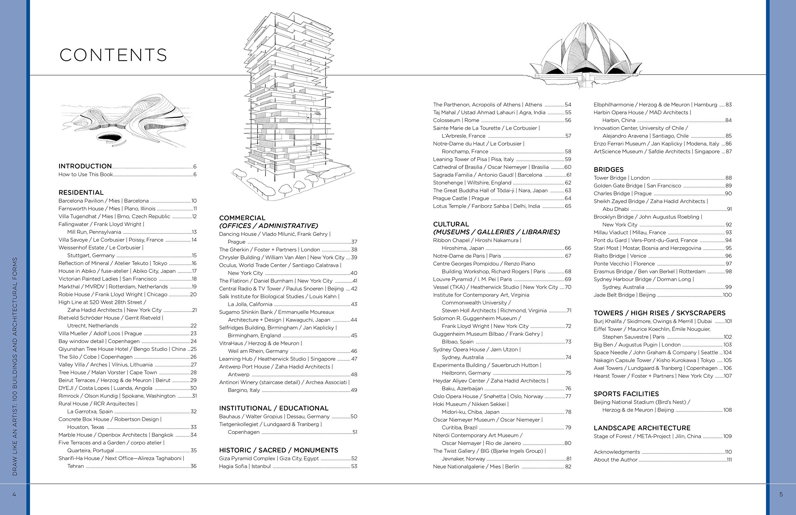 Draw Like an Artist: 100 Buildings and Architectural Forms is a library essential for any artist or architect who’s interested in learning how to draw and explore the underlying design principles of influential constructions.