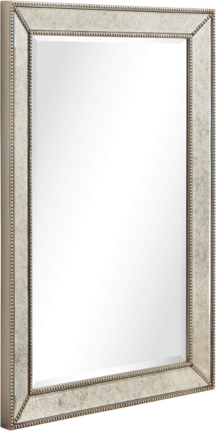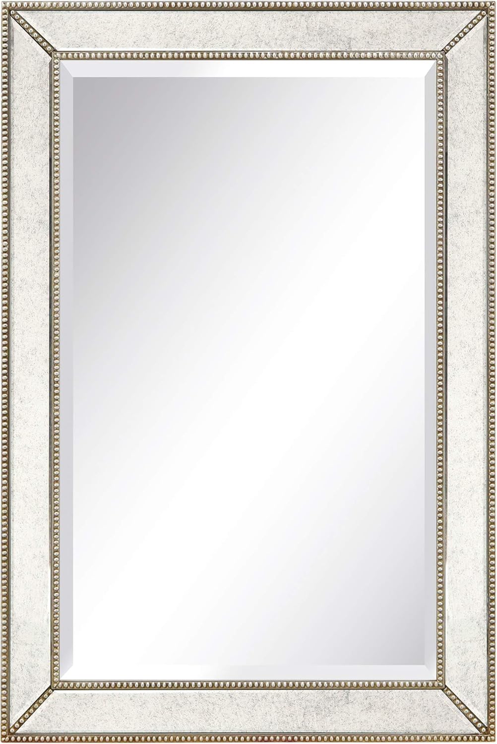 Empire Art Direct Solid Wood Frame Wall, 1"-Beveled Center Antique Mirror for Bathroom, Bedroom, Living Room, Ready to Hang, 24" x 36", Champagne