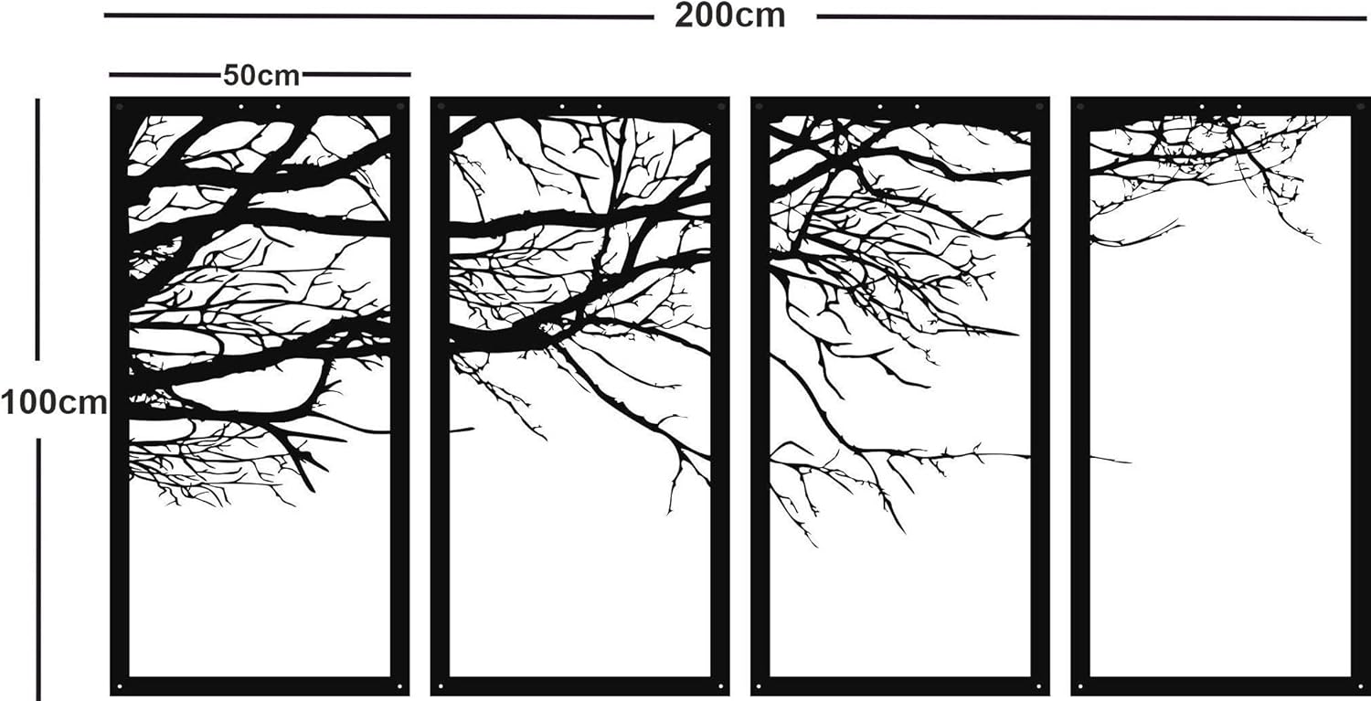 Metal Wall Art, Tree of Life 4 Pieces, Metal Tree Wall Art, Tree Sign, Metal Wall Decor, Interior Decoration, Housewarming Gift, 4 Panels Wall Hangings (79"W x 39"H / 200x100 cm)