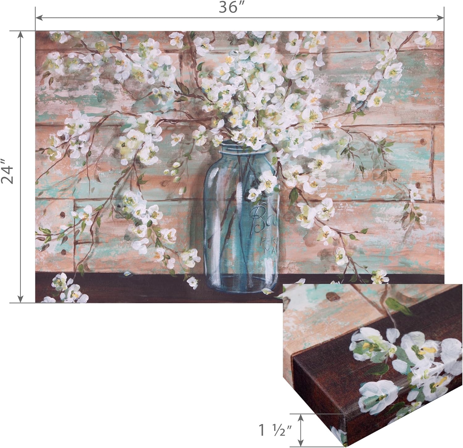Patton Wall Decor Blooms in Mason Jar Floral Art, 24" x 36" Wrapped Canvas, 24 x 36 Inch, Light Blue