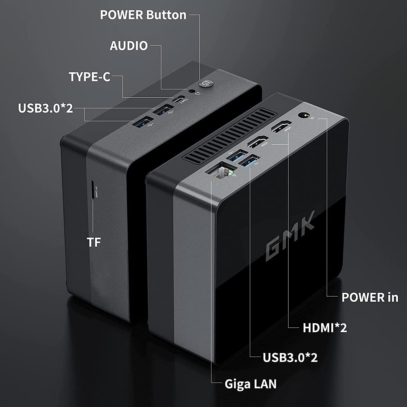 - HIGHER CONFIGURATION - Mini PC comes with 2*hdmi for 4k, 4*usb 3.0, 1*type-c, 1*1000mbps lan, 1*dc(19V-3.42A 65W), 1*3.5mm earphone jack*1, 1*tf card port. Wifi 5, bluetooth 4.2 supports connection to a wireless headset, keyboard, mouse, and other devices.