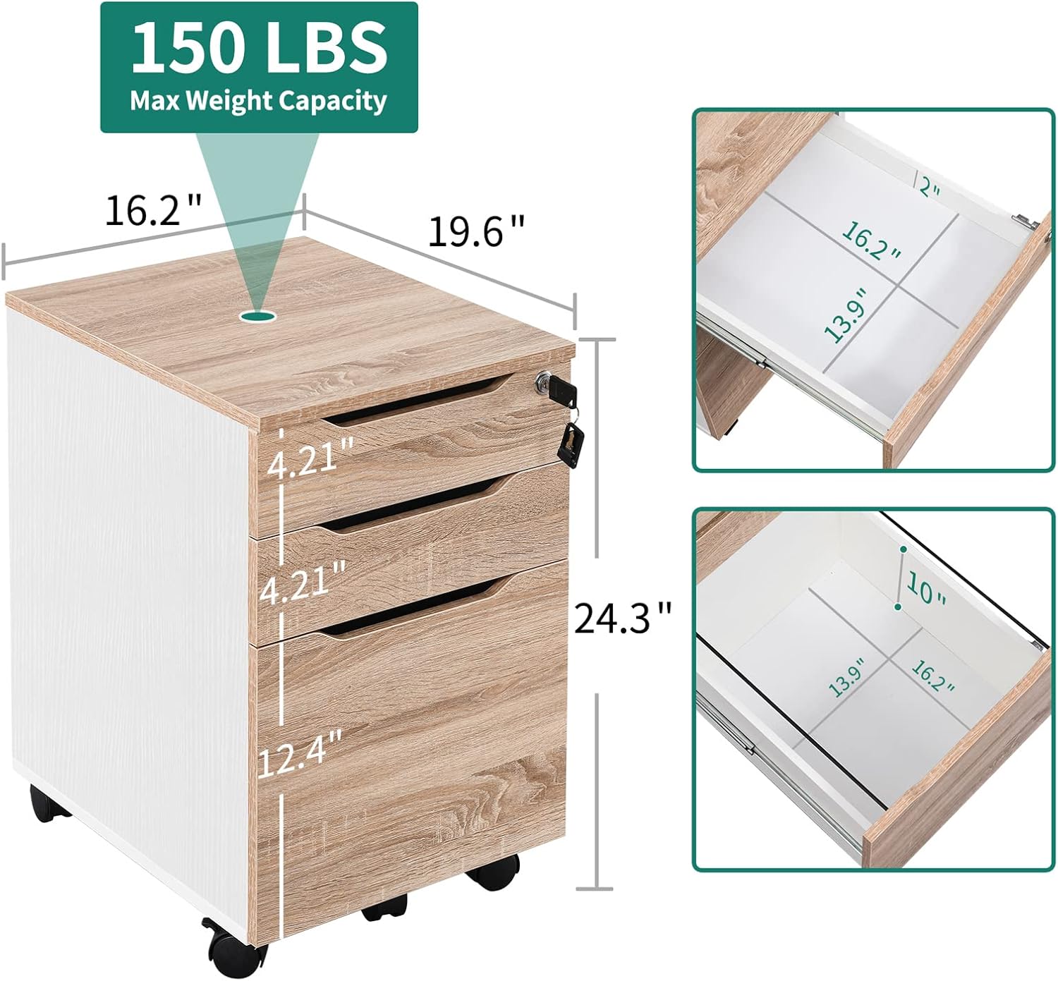 - 3 LOCKABLE DRAWERS: Offering plenty of space, two upper drawers neatly store your office supplies like books, staplers, pens, etc & the deep bottom one with hanging file racks holds your letter sized files; Also, you can put printers, or lovely plants on the tabletop.