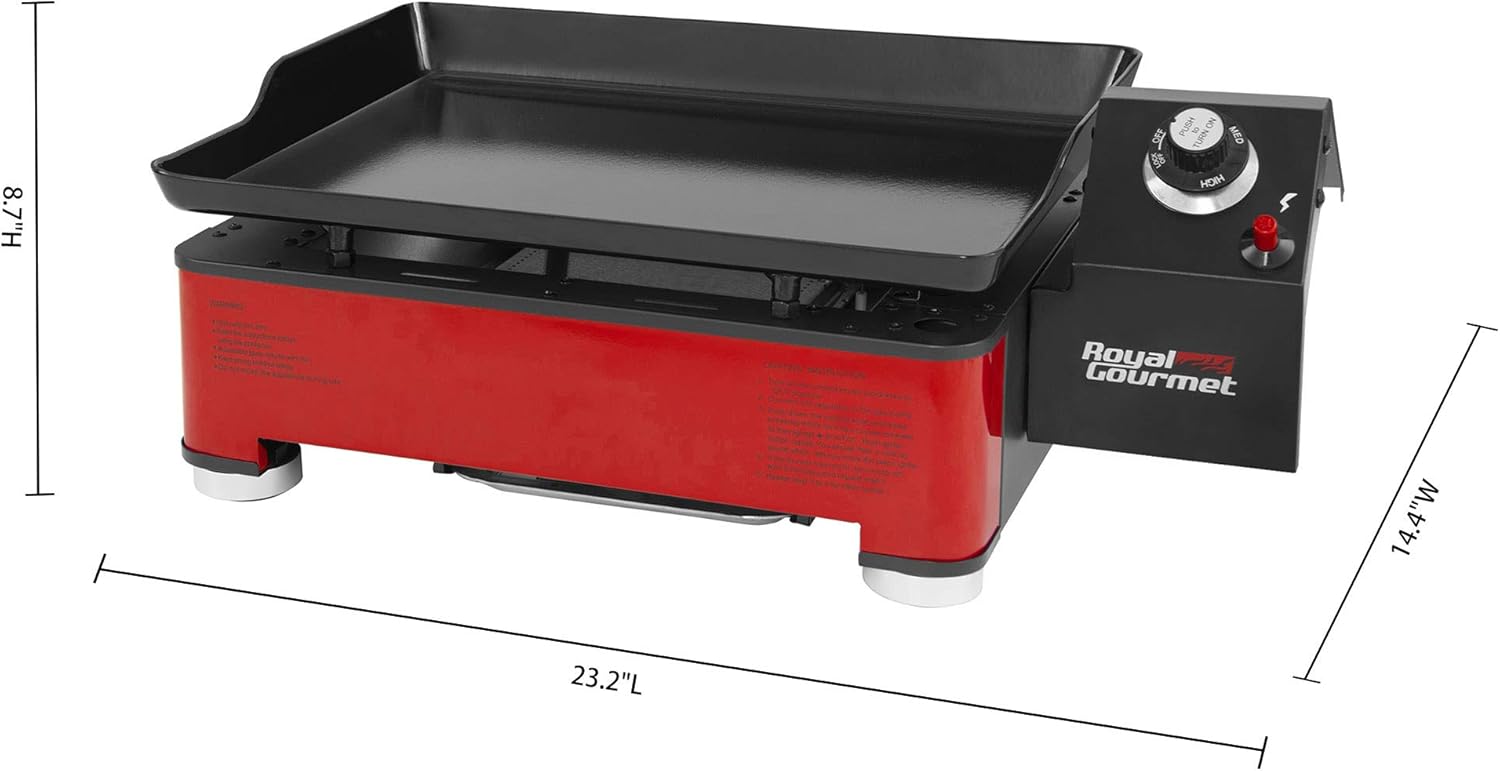 Royal Gourmet PD1202R 18-Inch Portable Table Top Propane Gas Grill Griddle for Camping, red