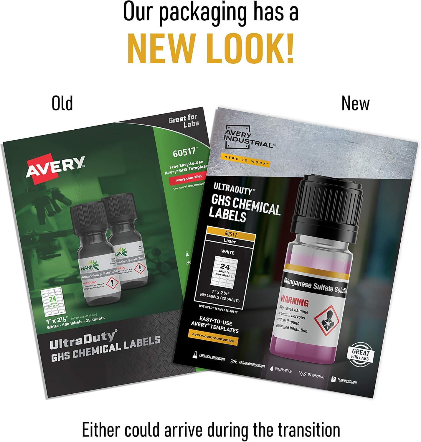 - 600 AWARD-WINNING LABELS: Avery UltraDuty GHS Chemical Labels are designed forlaser printers.