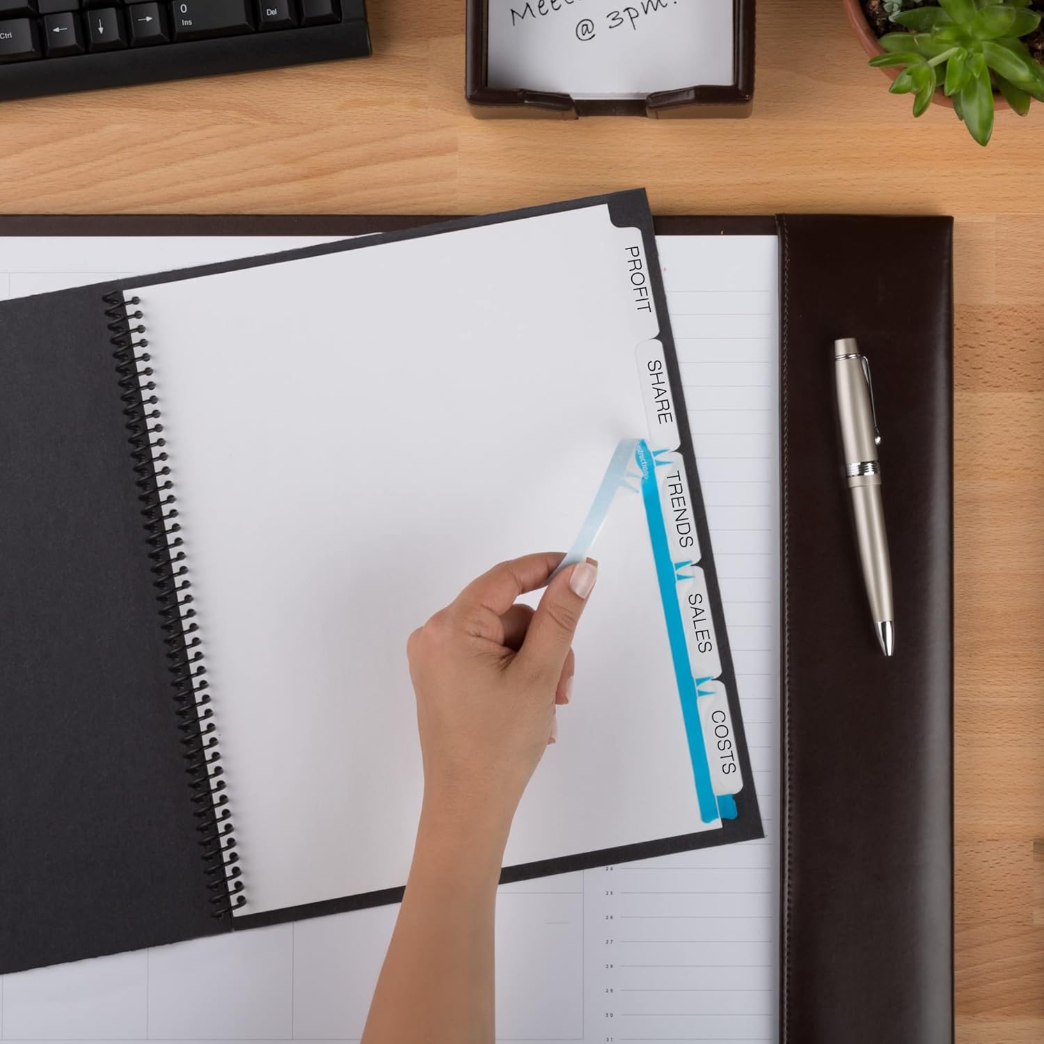 - Get a professional, printed-on look with clear labels that virtually disappear on the white divider tabs
