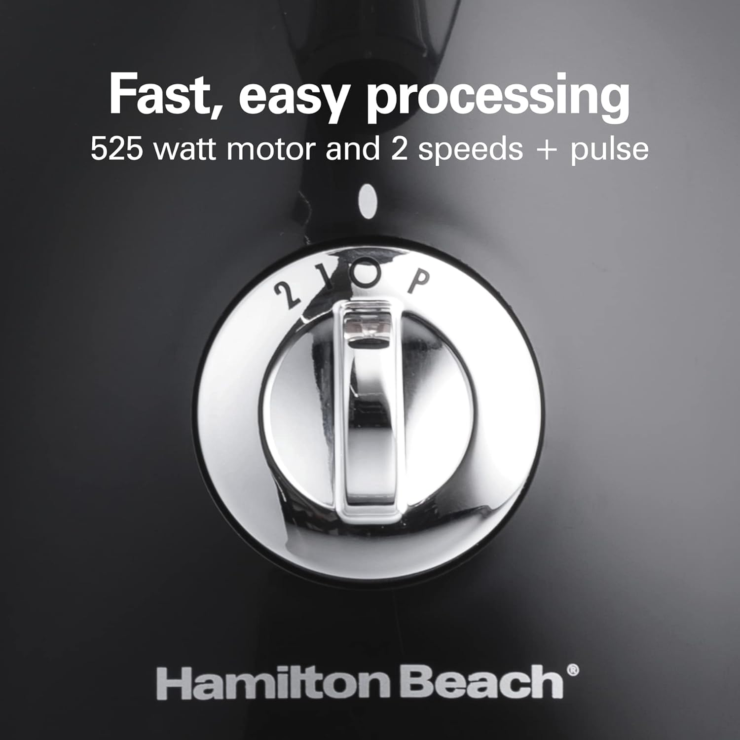 - FAST, EASY PROCESSING WITH 525 WATT MOTOR AND 2 SPEEDS + PULSE. The 525 watt motor packs enough power to handle even tough ingredients like hard cheeses and carrots, and the 2 speed + pulse dial provides all the control you need for fast, easy processing.