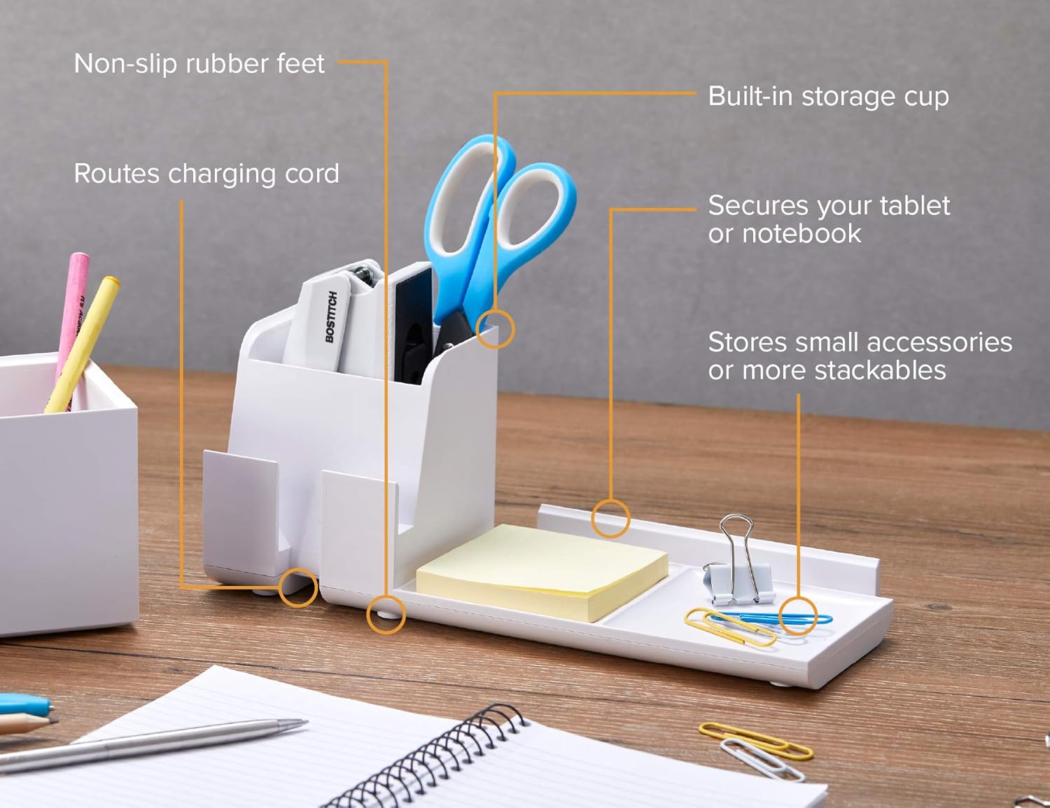 Bostitch Office Konnect Charging Station Desk Organizer Base, USB Phone Stand Compatible with Cell Phones & Tablets, White (KT2-BASEPHONE-WHT)